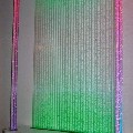 Капли водопада схожи по размеру с пузырьками в колоннах, и те и другие сверкают в лучах разноцветной подсветки. Отличает их направление движения — капли летят вниз, пузырьки, вибрируя, поднимаются вверх. Объемность, сияние и необычность — основное впечатление от созерцания этой инсталяции.