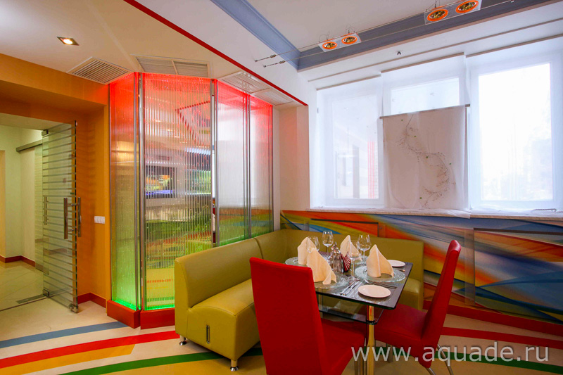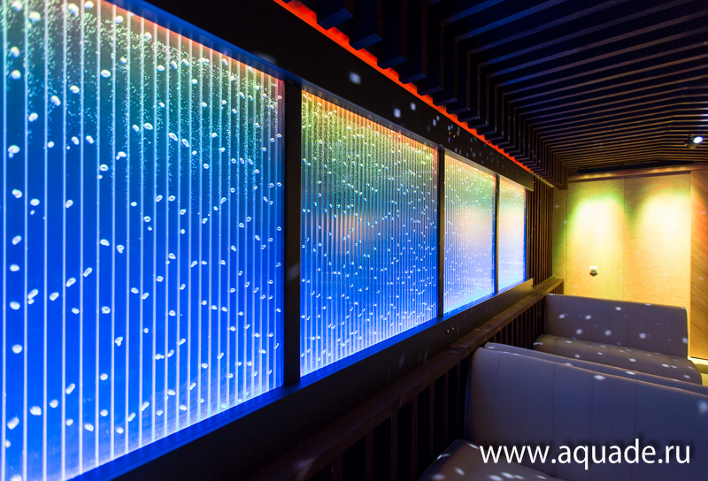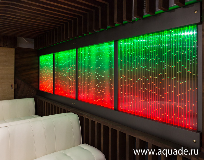 - Высокая прозрачность водяной стены с пузырьками и подсветкой достигается за счет применения высококачественного оргстекла сотовой конструкции Plexiglas SP (Германия).