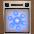 Панель светозвуковая представляет собой экран со светящимися пятнами, перемещающимися по кругу и меняющими свой цвет в зависимости от интенсивности и периодичности шумов, воспринимаемых внешним и внутренним микрофонами.